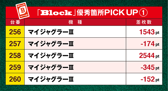 1番台から9番台まで、1台飛ばしてプラスptを記録!