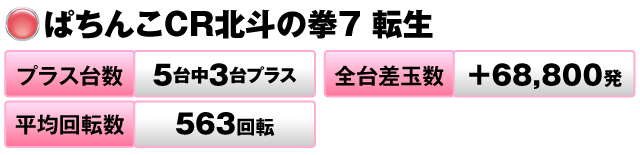 5台中3台がプラスで全台差玉数は+68,800発だった。