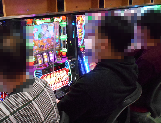 うれしそうに遊技をおこなうプレイヤーは、「エヴァンゲリオン フェスティバル」や「HEY!鏡」でも目にしている。