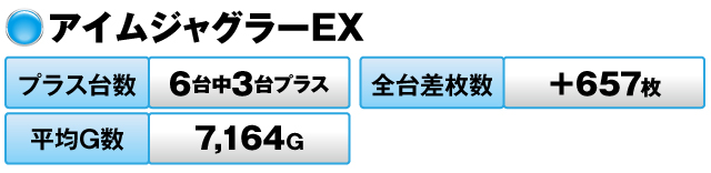 6台中3台がプラスで全台差枚数は+657枚を記録。