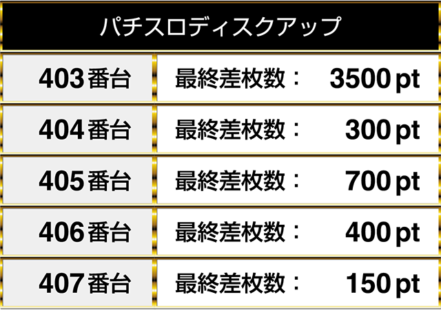 3500ptの台があった『パチスロディスクアップ』は5台が連なってプラスpt!!