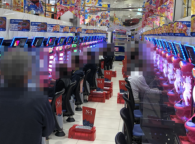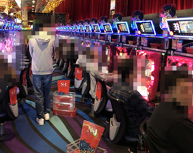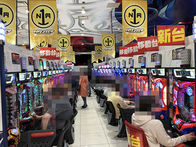 「P大工の源さん 超韋駄天」をはじめ、さまざまな機種が楽しまれていた「エヌワン黒埼店」。パチンコとパチスロの両方で、有意義な時間を過ごせそうだ。