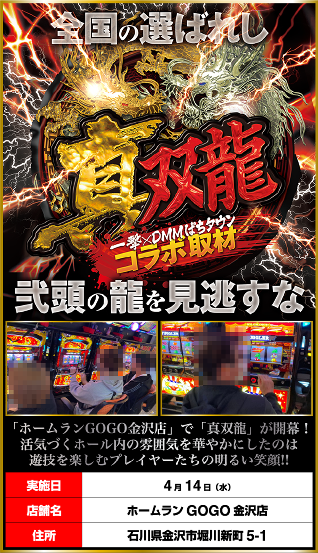 ホールに潜む龍の存在を探っていくうちに、プレイヤーの立場として「ホームランGOGO金沢店」に来店してみたいと感じた。