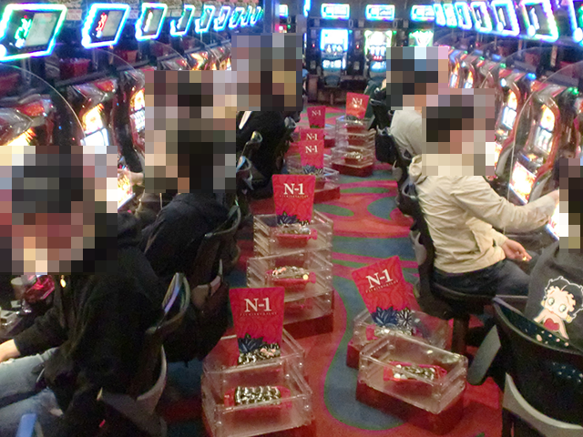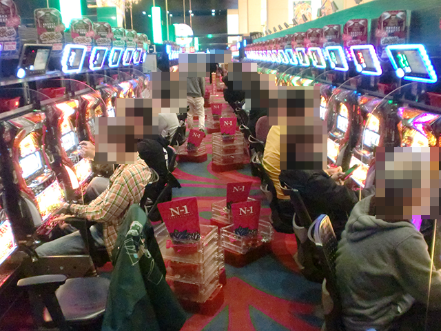 15時をまわる頃の「プレミアムハナハナ-30」は、33台のうち30台が埋まるほどに好評。