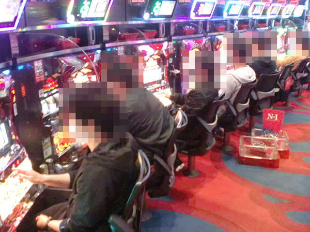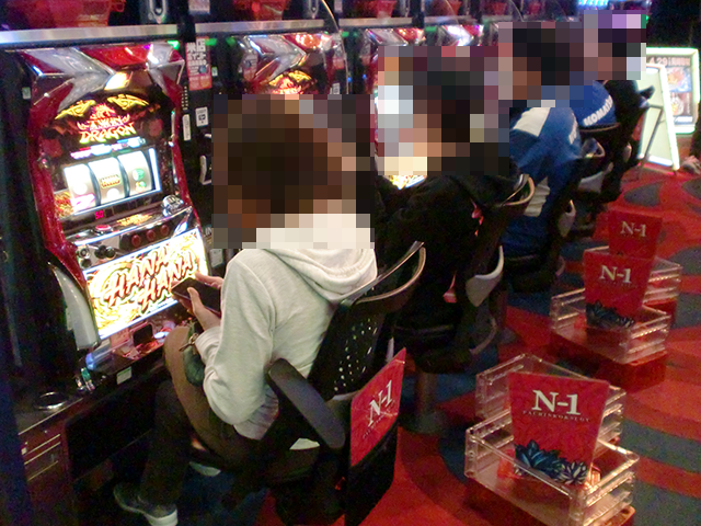 「ツインドラゴンハナハナ-30」も33台が設置されており、取材時は7割以上が稼働。プレイヤーたちの活躍によって、大きな活気が感じられた。