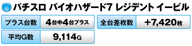 20台中13台がプラスで全台差枚数が+27,160枚、平均G数は7,430Gを記録。
