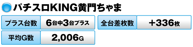 5台すべてがプラスで全台差枚数は+10,800枚、平均G数も7,472Gに及んだ。