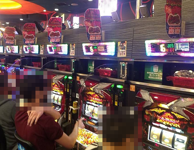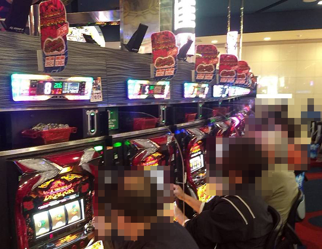 「プレミアムハナハナ-30」で遊技をおこなっているプレイヤーの表情も明るく、機種の魅力を堪能している模様。