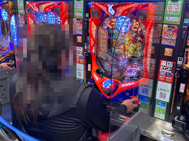 満面の笑みを浮かべてハンドルを握っている姿が魅力的で、心から遊技を楽しんでいることがうかがえた。