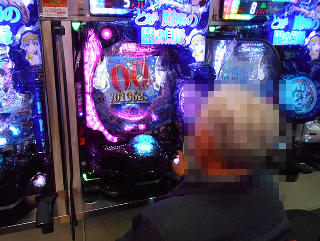 うれしそうに液晶画面を眺めている姿は、パチンコファンの目線でみてもうらやましく思えた。