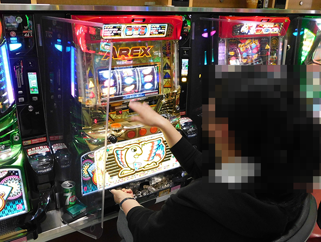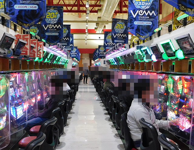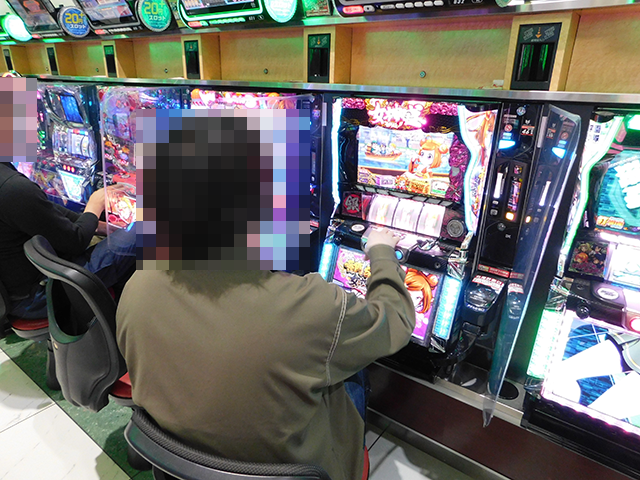 パチスロの状況をみてみると、うれしそうに遊技をおこなっているプレイヤーの姿があちこちにあり、楽しげな光景が広がっていた。