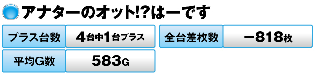 4台中3台がプラスで全台差枚数は+6,874枚だった。