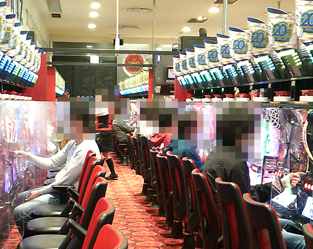 パチスロのシマをまわっていくと、さまざまな機種でうれしそうに遊技をおこなっているプレイヤーの姿が目に映った。