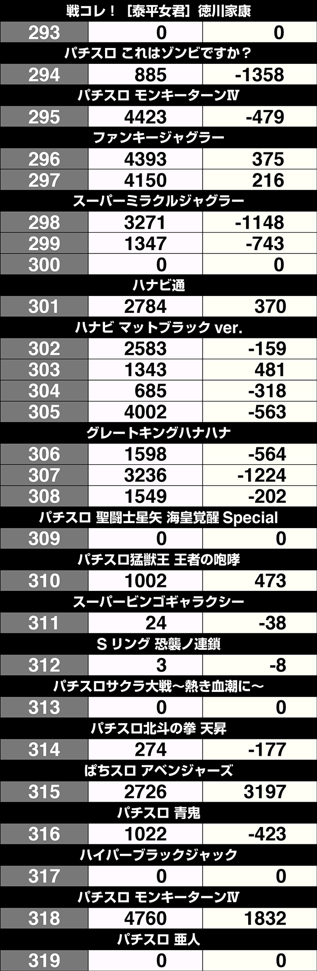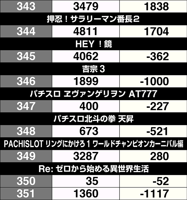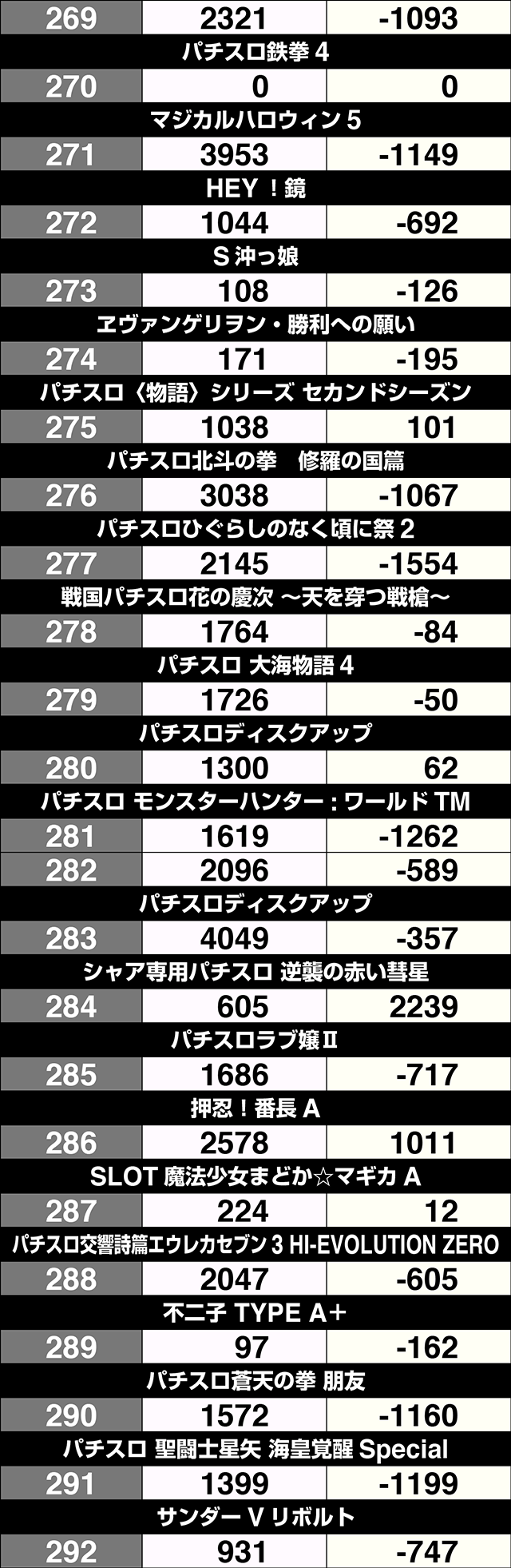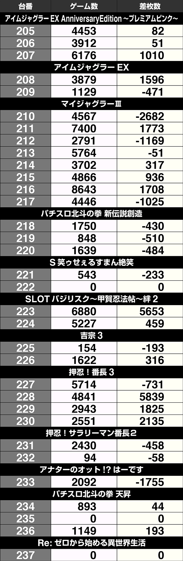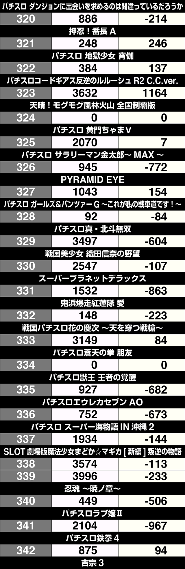 パチスロ全体ではプラス台の約4割にあたる19台が+1000ptオーバー。2台が+5000ptを超えた。