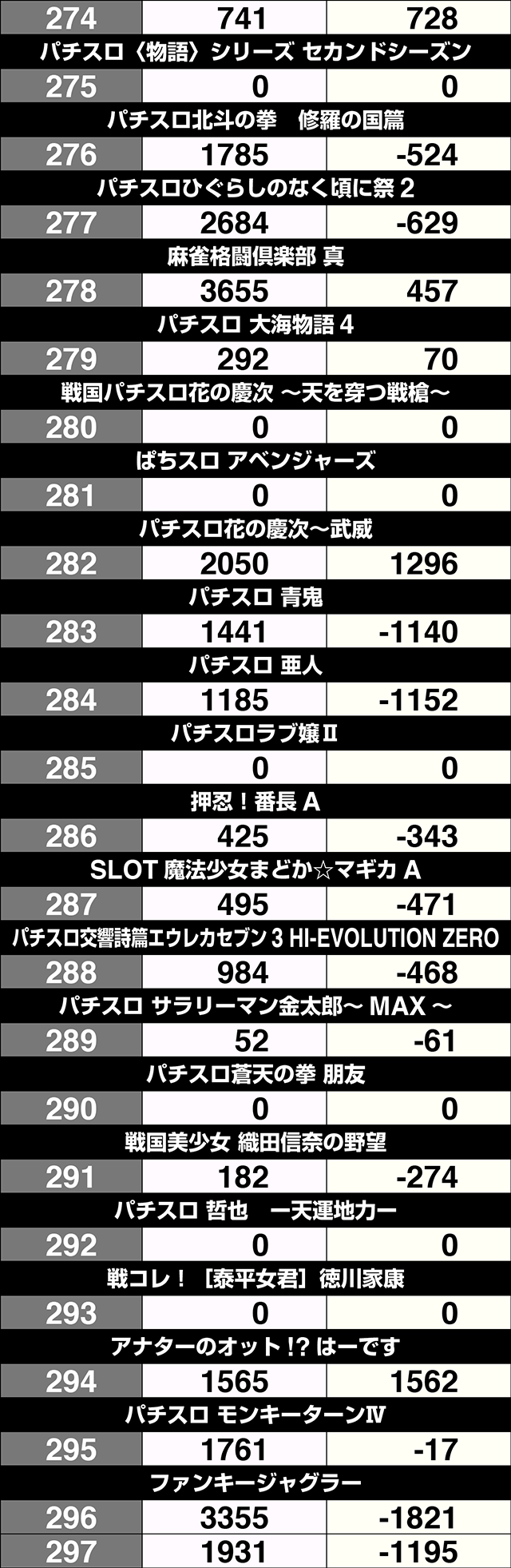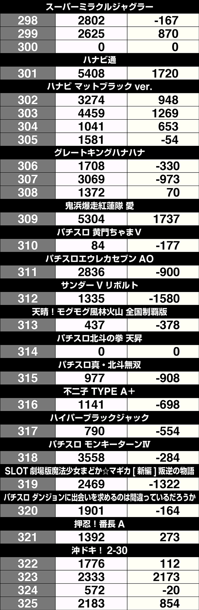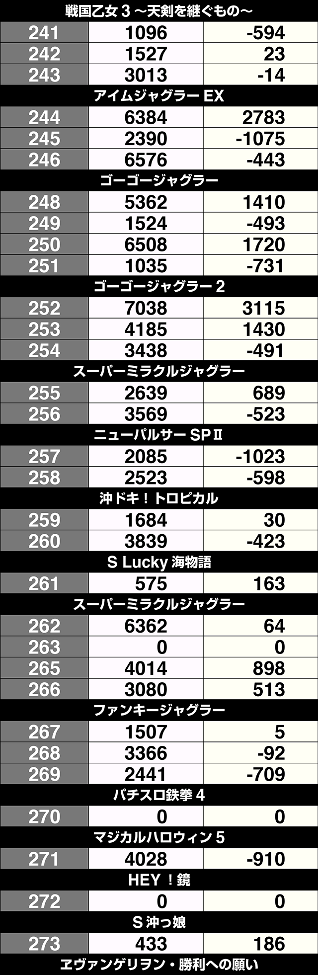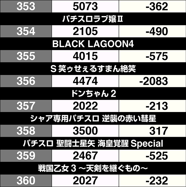 2月1日、「クラブジェイ篠路店」は、パチスロ全体で36%がプラス。トータルでの差枚数もプラスを記録した。4台以上設置されている機種は、11機種中7機種がプラス割合50%オーバー。プラスを記録した54台のうち、19台が+1000ptを上回り、5台は+2000ptを超えた。