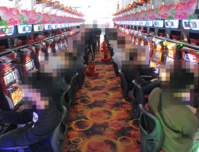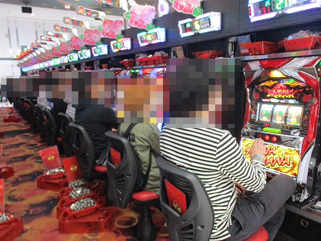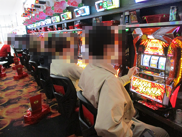 16台が設置されている「プレミアムハナハナ-30」は、14時を過ぎた時点で8割以上が埋まっていた。