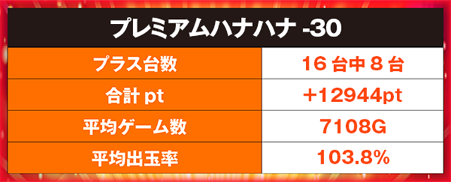 閉店時には機種全体で+12944ptを記録し、プラスでこの日を終えたのは8台。