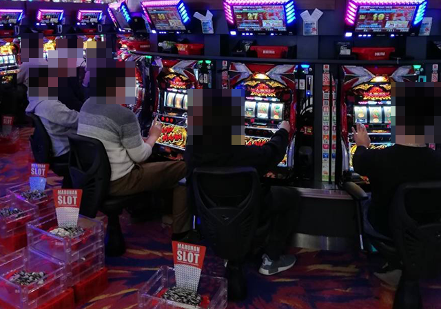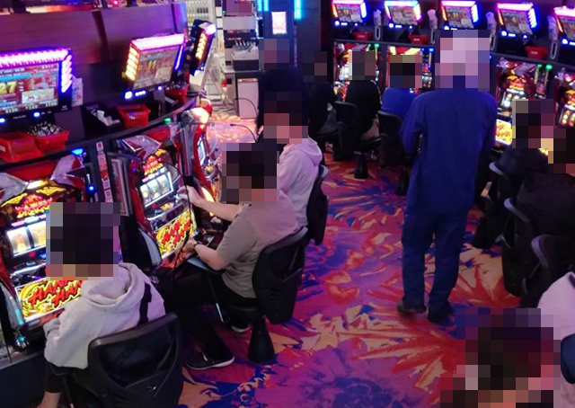 パチスロの状況をうかがうと、新旧やスペックを問わずに、さまざまな機種が楽しまれていた。