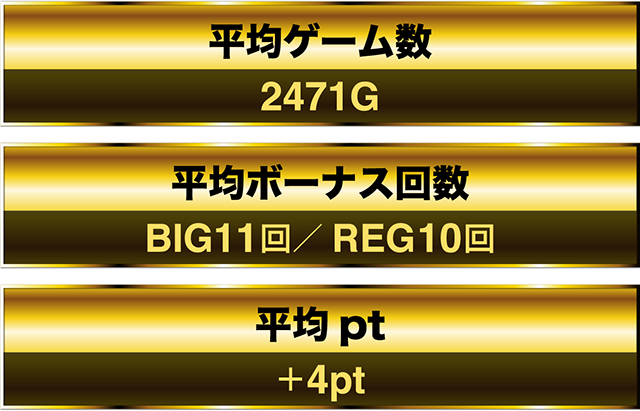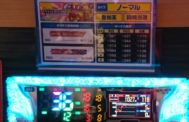 ボーナス合算確率は3台すべてが1/130以上と、設定5の数値を上回っていた。