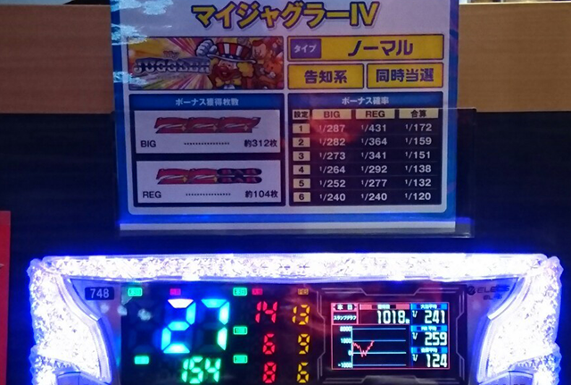 遊技を満喫しているような姿だけでなく、16時頃には『マイジャグラーⅣ』のデータカウンターもチェックした。