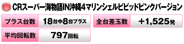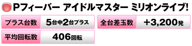 5台中2台がプラスで全台差玉数は+3,200発だった。