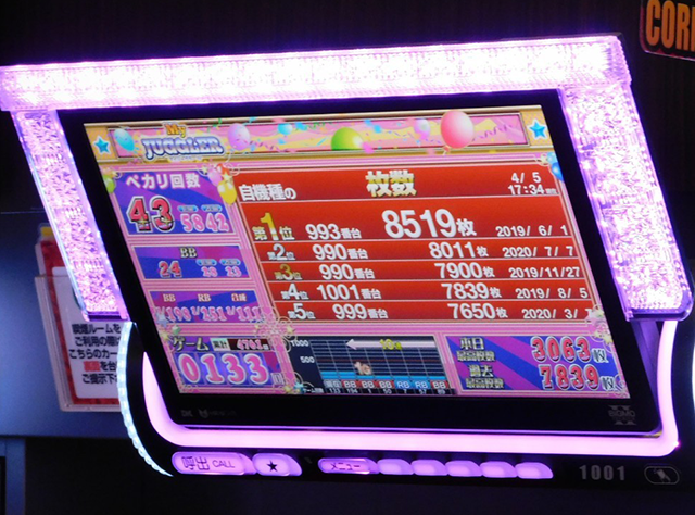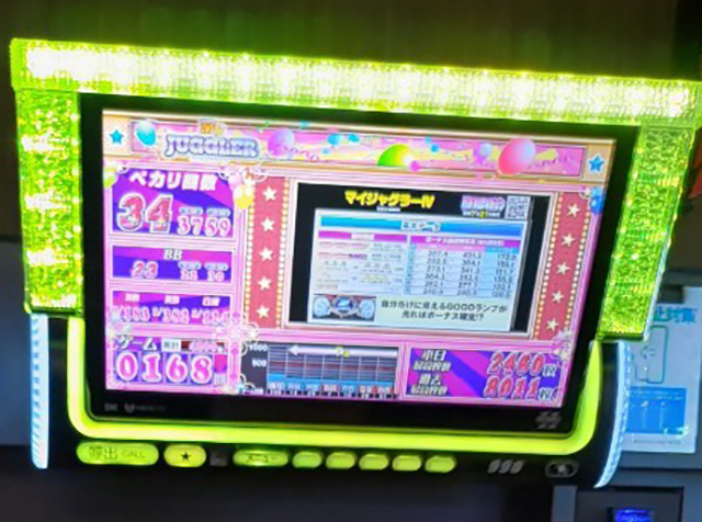 この日、もっとも多くのボーナスに当選したのは『マイジャグラーⅣ』の1台。
