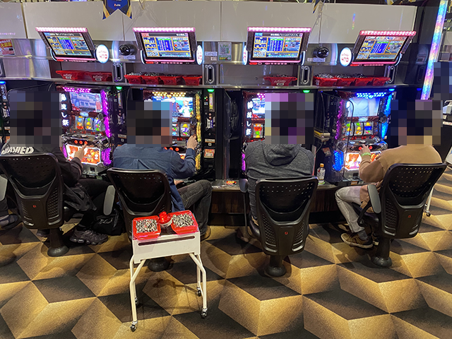 17時頃に入店すると、パチンコとパチスロがともに大勢のプレイヤーでにぎわっていた。