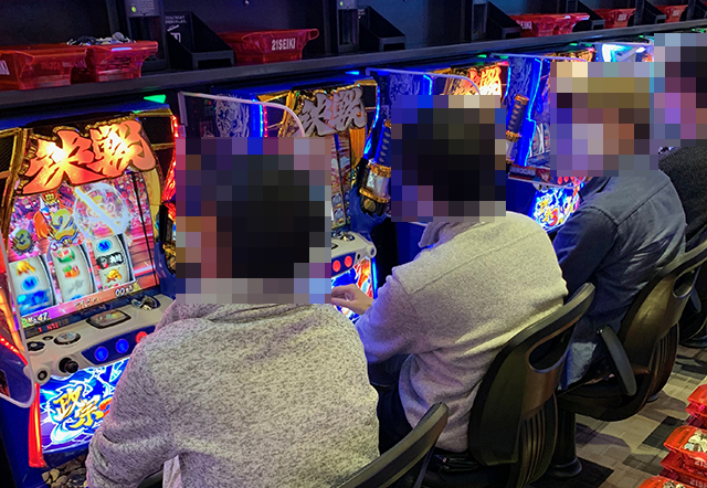 プレイヤーが披露するパフォーマンスによって、主役級の存在感を放っていた「政宗3」。にぎわうパチスロのなかで、もっとも魅力的に映る場所であった。