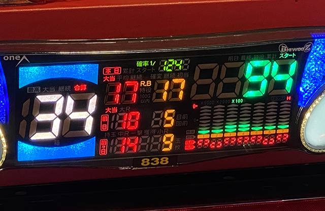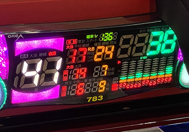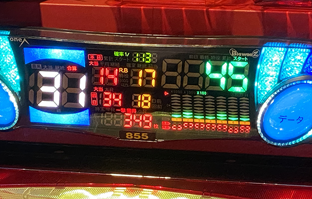 REGがBIGの回数を上回りながら、ボーナス当選回数が41回の台があった。