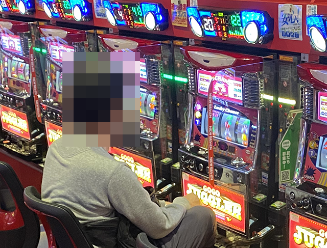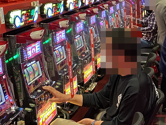 にぎわうパチスロでは、「マイジャグラーⅣ」でパフォーマンスを披露するプレイヤーが目立っていた。