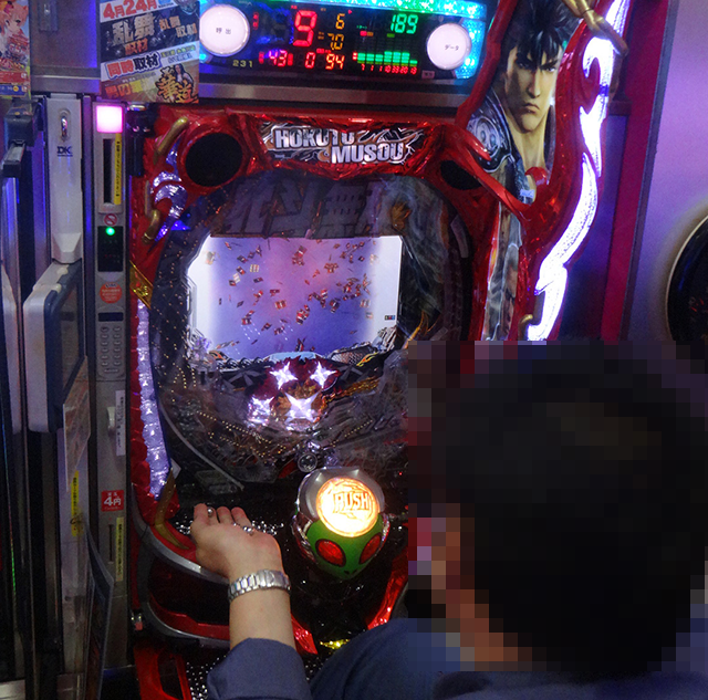 「P真・北斗無双 第3章」をはじめ、さまざまな機種でプレイヤーの笑顔がみられた「パチンコ玉三郎糸魚川店」。