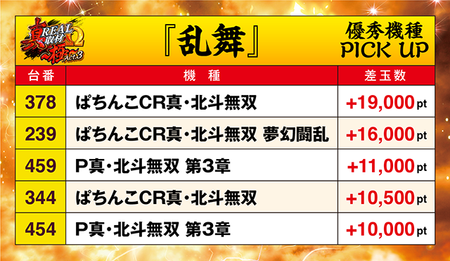「ぱちんこCR真・北斗無双」の+19,000ptをはじめ、複数の台が+10,000ptオーバー!