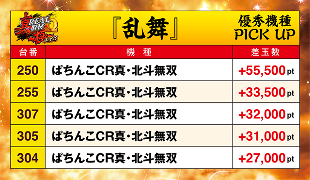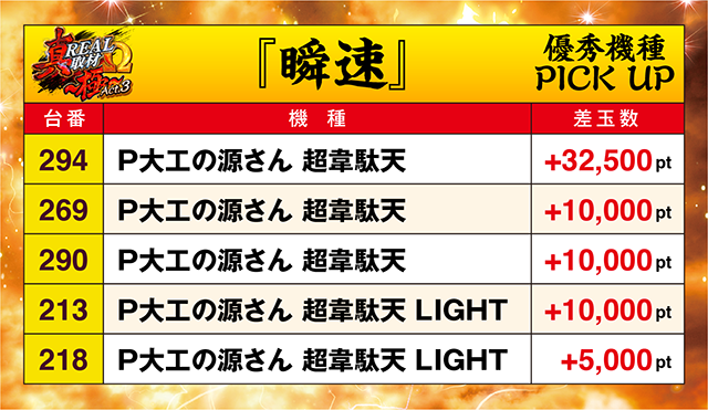 6台が+25,000pt以上を記録するなど、ホール内でトップクラスの成績を残した。