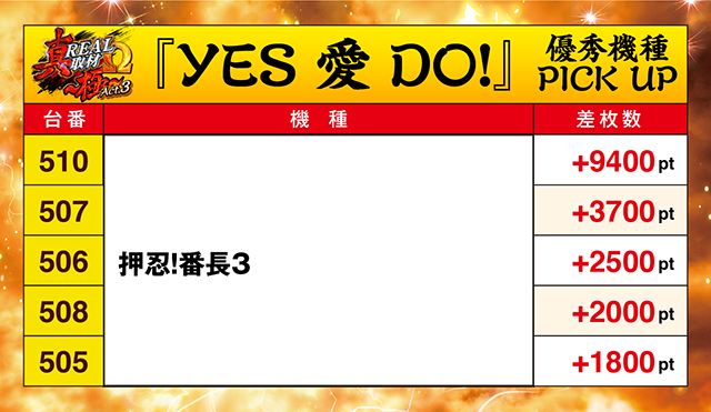 6割強がプラスptを記録した「押忍!番長3」では、510番台がなんと+9,400pt!