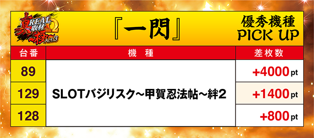 「SLOTバジリスク~甲賀忍法帖~絆2」のトップは+4,000pt!
