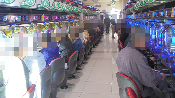 パチンコは1円パチンコが人気で、海物語シリーズを中心に早い時間帯からほぼ満席となっていた。