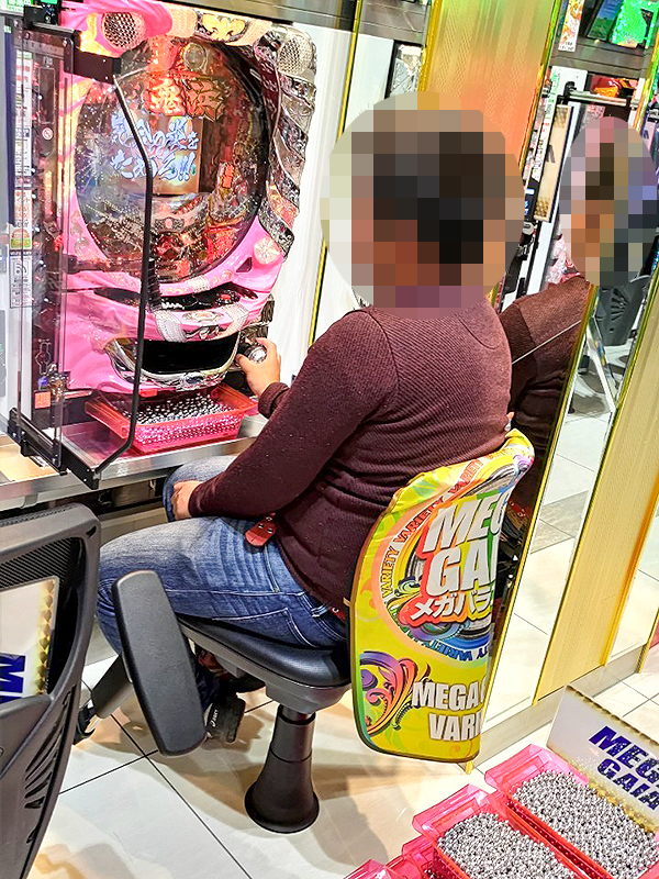 15時ごろの4円パチンコを見てみると「P大工の源さん 超韋駄天」や「P大海物語4スペシャル」が好評。プレイヤーの嬉しそうな表情を確認している。