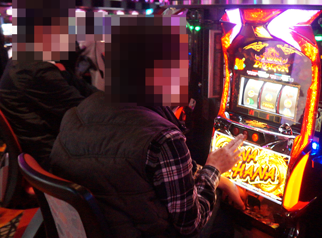 15時をまわった頃のホール内では、ハナハナシリーズとジャグラーシリーズがとくに盛況!