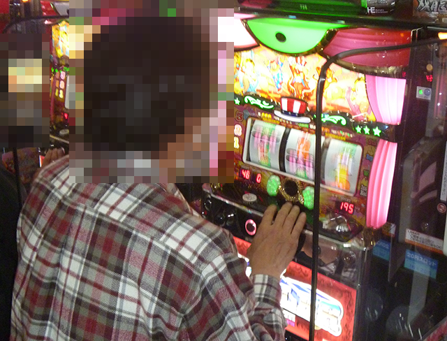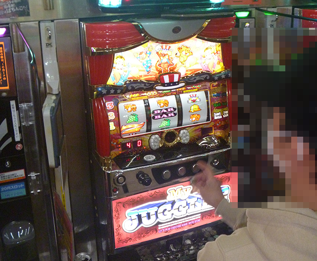 にぎわっている場所がたくさんあるなかで、とくに目立っていたのが「マイジャグラーⅣ」。