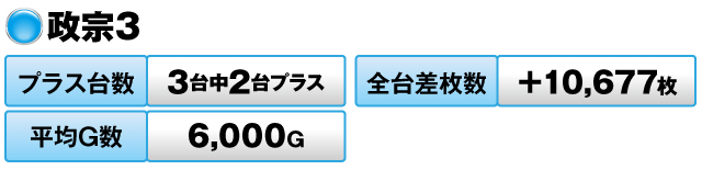3台中2台がプラスで全台差枚数は+10,677枚だった。