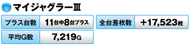 パチスロでは、『マイジャグラーⅢ』が貫録の出玉を披露。