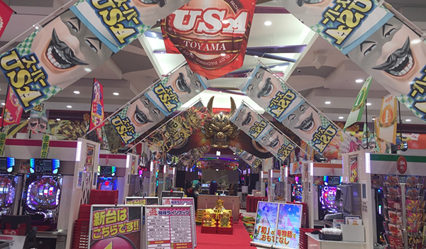 機種に出てくるキャラをモチーフにした大きな装飾など、華やかな光景も印象的な「スーパーUSA富山店」。