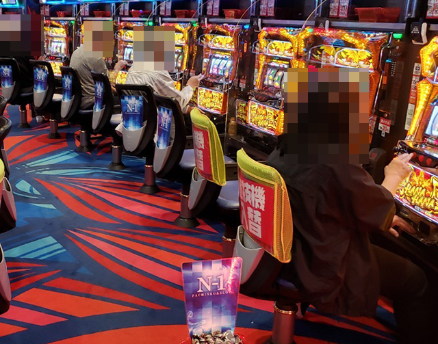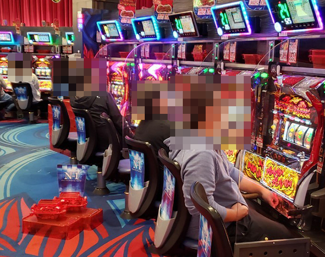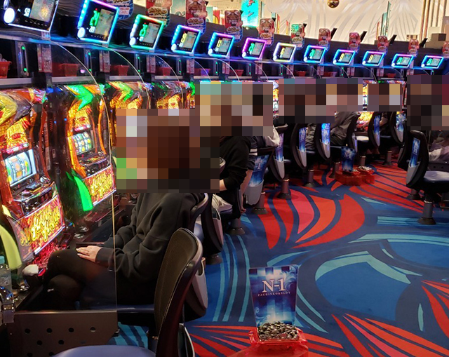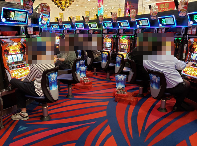 15時半をすぎる頃にパチスロをみると、ハナハナシリーズに多くのプレイヤーが集まっていた。