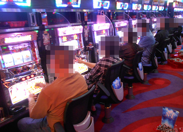 パチスロコーナーでもプレイヤーが楽しげに遊技中!