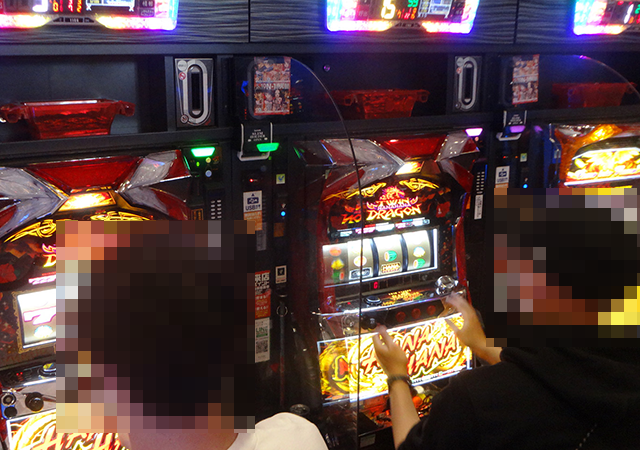 ホールに設置されているハナハナシリーズのなかで、台数がもっとも多い「ツインドラゴンハナハナ-30」。