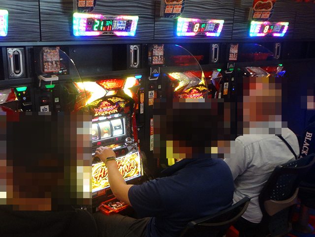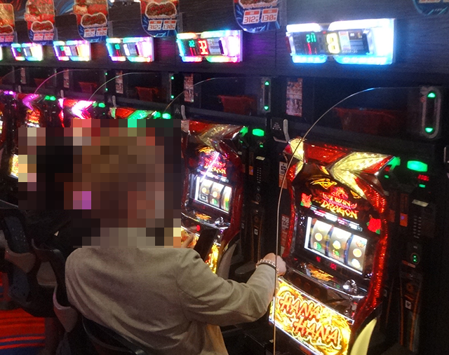 「プレミアムハナハナ-30」でもプレイヤーがイキイキとした様子で活躍。うれしそうな表情からは、機種の性能を引き出していることがうかがえた。