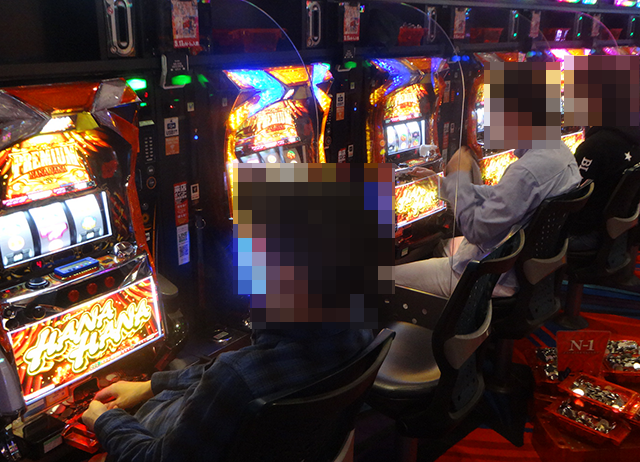 『プレミアムハナハナ‐30』で遊技をおこなうプレイヤーはとてもうれしそうであり、機種の魅力を堪能している様子であった。