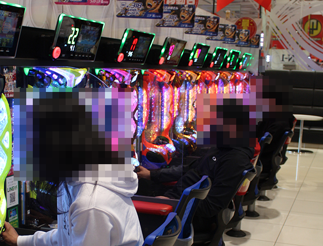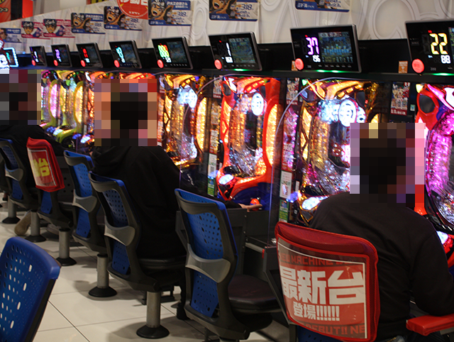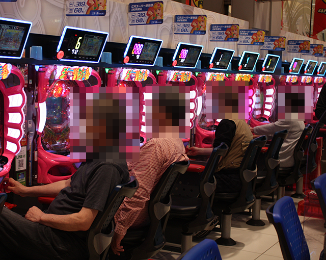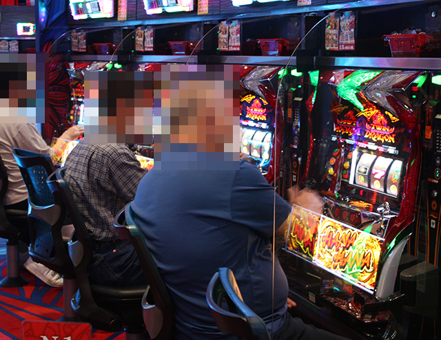 「P大工の源さん 超韋駄天」をはじめ、いくつもの機種に楽しそうな光景が広がっていた。