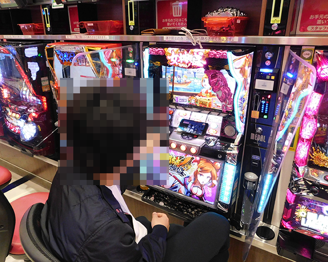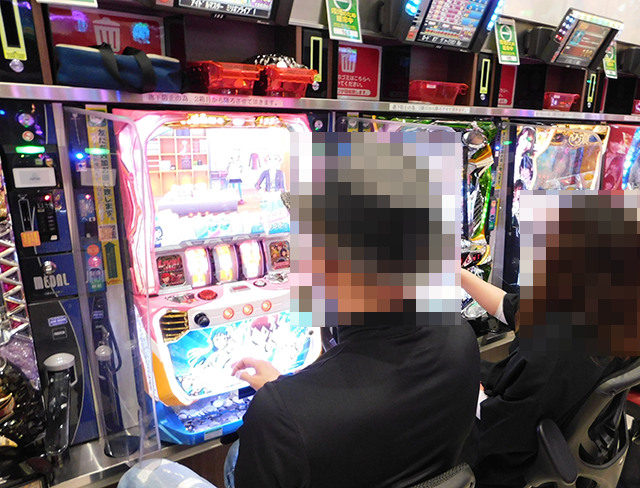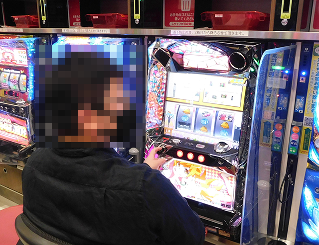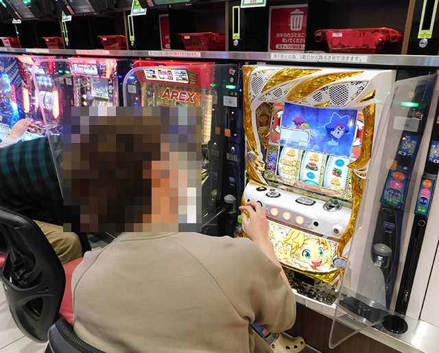 パチスロ全体に楽しそうな光景が広がっているなかでも、「マジカルハロウィン7」で遊技をおこなっているプレイヤーが存在感を放っていた。