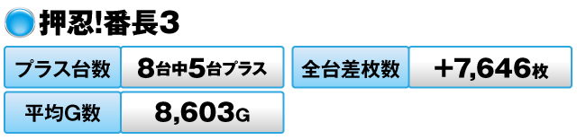 8台中5台がプラスで全台差枚数は+7,646枚だった。